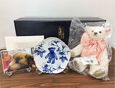 テディベアがデザインされたお皿、可愛いピンクのリボンを付けたベア。丁寧で高級感溢れる逸品です。日本限定1000体となります。